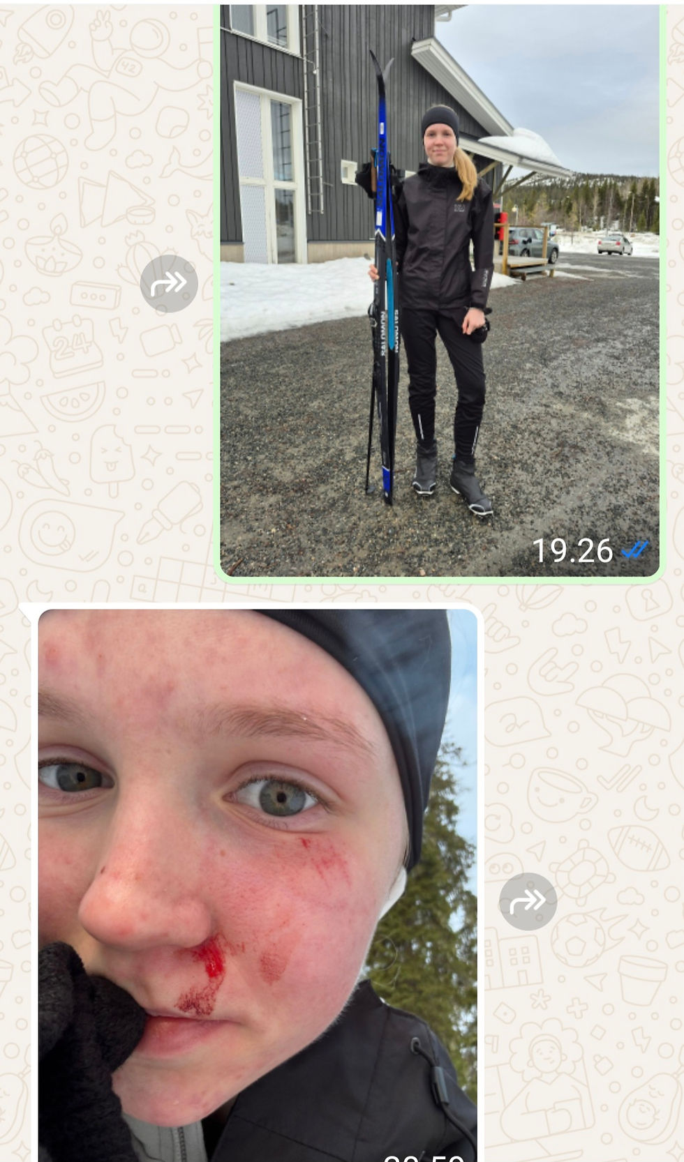 Moona kävi vuoristoradan jälkeen sitten hiihtämässä ja metsän siimeksessä laskut olivatkin todella jäässä eikä ihan ilman vahinkoa reissusta selvitty. Onneksi ei käynyt pahemmin kun vastapuolena oli puunkanto. Illalla silmä turposi aika paljon mutta seuraavan aamuna tilanne oli yllättävän hyvä.